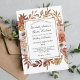 A beautiful fall and autumn colour wedding invitation. The invitation is framed with a colourful bouquet of flowers in rusts, soft pinks, white and browns. All fields can be edited.