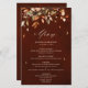Elegant rustic country fall wedding menu featuring brown, red, orange, green eucalyptus leaves. Please contact me for any help in customisation or if you need any other product with this design.