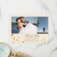 This 5x7 wedding thank you flat invitation card has a fall / autumn season theme. At the bottom, there are leaves and acorns scattered about with a place for you to personalise the thank you message. At the top, you can easily customise this with two of your photos from your wedding reception.