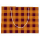 Fall Autumn Orange Burgundy Plaid Pattern Large Gift Bag