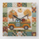 Personalised Rustic Wall Art for your Home. This Farmhouse Style Wall Clock has Historic Charm with its Old Farm Truck hauling Farm Grown Pumpkins. It's Country Chic with its Patchwork Quilt appearance. The Quilt is Faux and Simulated. Personalise this Rustic Wall Clock to your Hearts content! Just Add Your Own Name!