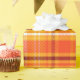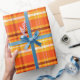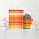 Pretty shades of orange, gold and brown in a plaid pattern.