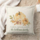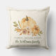 Autumn watercolor floral pumpkins pillow with the phrase "thankful. grateful. blessed." which is editable. The pillow can be personalised with a name/family name in script in a dark greyish green. Same graphic on both sides of the pillow.