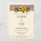 Rustic, chic golden sunflowers on a weathered fence backdrop atop a cream card background. Perfect autumnal theme for your October or November wedding events or for any fall celebrations. Just do some re-wording.