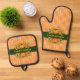 Fall Autumn Thanksgiving Pumpkins Orange Striped Oven Mitt & Pot Holder Set
