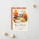 Introducing an exquisitely designed fall moving announcement card that beautifully captures the essence of joy and new beginnings. This charming card features a breathtaking watercolor illustration of a rustic house, perfectly nestled among a tapestry of vibrant autumn trees adorned with rich, fiery orange leaves.