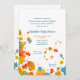 A autumn-theme, baby boy shower invitation with swirling fall leaves, some of which are blue. (Vector created by freepik - www.freepik.com). The card is easy to customise with your wording, font, font colour, paper shape and choice of paper type. Not exactly what you're looking for? All our products can be custom designed to meet your needs at no extra charge. Simply contact us at heartfelthelper@gmail.com. Coordinating products available: Just ask us!"