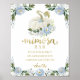 Lovely blue floral watercolor, faux foil calligraphy, pumpkin fall-themed baby shower mimosa bar sign. Easy to personalise with your details. Please get in touch with me via chat if you have questions about the artwork or need customisation. PLEASE NOTE: For assistance on orders, shipping, product information, etc., contact Zazzle Customer Care directly https://help.zazzle.com/hc/en-us/articles/221463567-How-Do-I-Contact-Zazzle-Customer-Support-.