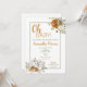 Fall theme baby shower invitation with beautiful autumn floral and white pumpkins in the warm tones of brown, green, and orange. This baby shower invitation is perfect for any gender and has a modern look that will please your guests.