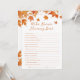 Add a fun touch to your celebration with this Personalised Fall Baby Shower Who Knows Mummy Best Game Card. Perfect for cosy gatherings, this charming game fits beautifully with fall themed baby shower ideas and is a great addition to your fall baby shower. Whether you're planning fall baby shower themes, looking for fall baby shower ideas, or exploring autumn baby shower ideas and October baby shower ideas, this game card brings seasonal joy to your party!