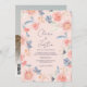 A pretty fall, modern, chic and elegant wedding invitation with custom names with a hand written calligraphy, with a pretty dusty blue, light peach, pink and orange floral touch and 1 photo, add your QR code for rsvp , wedding details and more on pastel blush pink. All the text, names and background colours are customisable. A simple and minimalist invitation featuring pretty garden autumn flowers .
