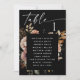 Direct your guests in style with this elegant fall wedding seating chart card. Designed with a bold black background and soft watercolor florals in blush, peach, and earthy tones, it beautifully complements boho, rustic, or moody autumn wedding themes. This card displays a table number with a list of guest names beneath, helping guests easily find their seats during your reception, rehearsal dinner, or engagement party. The floral accents add a romantic touch while keeping the design clean and modern.