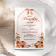Celebrate your little pumpkin on the way with this charming baby shower invitation for a girl. Featuring whimsical pumpkins with a sweet bow and surrounded by pink, orange, and burnt orange flowers, this fall-themed design blends boho and coquette style for the perfect seasonal celebration. Personalise with your party details to create a keepsake guests will love.