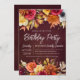Fall Burgundy Flowers Chic Script 70th Birthday Invitation