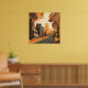 This rustic view of a fall cityscape will enliven any room in your home or office. Looking at the artwork makes you feel if you're on an early autumn evening in the city as the days are becoming shorter and the trees have turned to their spectacular fall colours of orange, red, yellow and brown.