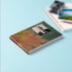 Personalise the natural Fall Coloured Leaves Celebration of Life Memorial Guest Book for attendees at your death tribute or funeral service and wake to sign. Customise it with the name of your deceased loved one, picture, birthday and date of death. This custom woodsy guestbook features a digitally painted nature photograph of red, orange and yellow Korean maple leaves on the tree with a blurred green woodland background. Unique inspo or idea for a September, October or November Autumn season event.