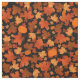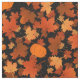 This maple leaves and pumpkins fabric features a colourful autumnal pattern of varied size maples leaves in orange, gold and brown arranged randomly with a few scattered pumpkins on a customisable black background - by katz_d_zynes