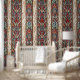 Elevate your home decor with our Fall Colours in Filigree and Stripes Wallpaper, a sophisticated design that seamlessly blends the rich hues of autumn with intricate elegance. This stunning wallpaper showcases a captivating pattern featuring deep reds, earthy browns, warm tans, serene blues, and moss green, all beautifully intertwined in a stylish combination of delicate filigree and bold stripes. The result is a visually striking design that brings seasonal charm and timeless sophistication to any room.