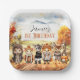 Cute Birthday party Paper Plates with fall scenery and fall furry friends in autumn outfits. Adorable design in cosy fall colours with storytelling vibes. Not just for 1st Birthday. Easily personalise the text. Please visit the store for the full line of products that are available - Kate Eden Art