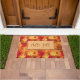 Doormat shown with a festive fall autumn leaves print design.