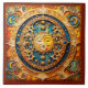 Celebrate the change of seasons with this colourful AI-generated design for the Fall Equinox: Sun and Moon in a yin-yang motif, surrounded by stars and other filigree decoration. The rich vibrant colours and intricate pattern will surely make this the focal point of any setting. Ceramic tiles are so versatile! Slip one under a hot dish to protect the finish of a table or counter. Include as a part of a tiled wall or countertop installation. Or frame and hang as wall art to brighten a cosy corner or a gallery wall. (Framing options are available at checkout.)