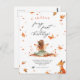 Fall Fairy First Birthday Invitation with a Fox and a pixie with wings and fall leaves