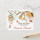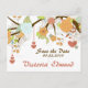 This elegant and playfully romantic save the date postcard design features a floral lined dark brown branch with light blue, dusty pink, tangerine orange and lime green colours. From the branch are dangling hearts to accent the mood. The wording is in dark brown with the bride & groom's names in a coordinating colour to matche the hearts. This would be nice for a late summer or autumn wedding or could be customised into an anniversary party invitation or bridal shower invitation.