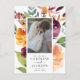 This floral photo save the date is perfect for fall weddings. The autumn-themed save the date postcard features lovely watercolor flowers and fall foliage in pretty fall colours like plum, golden yellow, peach, and olive green. The fall flowers are arranged in a bouquet behind a photo and wedding details. Add additional wedding details, including your wedding website, to the back of the card.