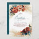 Fall Floral Teal Blue and Terracotta Fall Baptism Invitation