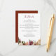 This is an autumn themed wedding details enclosure card using rustic and boho watercolor foliage and florals in tones of rust, terracotta, burgundy, deep greens and oranges.