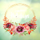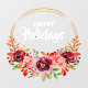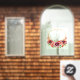 Burgundy and pink flowers among orange and green leaves and any wording - we show Happy Holidays - are featured on this window cling - Choose the SIZE and if you want the cling to be on the **front or back.
