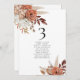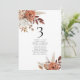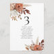 Fall Florals Table Number Names Seating Chart Card. Edit you number for each table and add to your cart separately. Same design is on both sides, use for a hanging display so guests can find their seat or on each table. Beautiful autumnal florals and grasses in autumnal shades of terracotta cream and browns are at the top. Easily personalise the table number and your guest names. The same design is on both sides and will update simuktaneously as you change the words to your own.