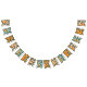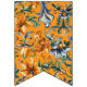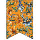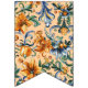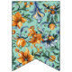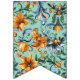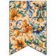 Beautiful fall flowers with blue iris on orange, cream and green background