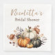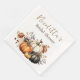 These elegant custom party napkins feature a Fall floral theme with pumpkins. A watercolor image of four different coloured pumpkins is placed at the bottom. They're accented with a bouquet of dried flowers in beautiful Autumn colours. They're perfect for a bridal shower, birthday party, wedding, or any other cosy Fall celebration.