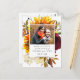 Dramatic and elegant Save the Date card features your couple's photograph surrounded by large fall flowers and autumn foliage. The fall floral arrangement contains golden yellow sunflowers, dark red roses, and white hydrangea flowers. Deep green and olive leaves deepen the autumn vibe. Modern Boho Botanical is very popular this season. The soft dove grey text provides the wedding details. This Save the Date Card is part of the Sunflower and Burgundy collection. It has the templates you need to create a Save the Date stationery suite your guests won't forget!