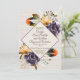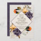 Fall themed stylish wedding invitation done in an ivory faux corrugated like texture. A purple framed ivory diamond shaped text area, has purple and golden yellow flowers with pampas grass and colourful feathers, decorating the top and bottom. Personalise all the text for your special day. Matching products are available.