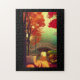 Fall foliage over bridge over turquoise water jigsaw puzzle