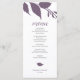 This modern wedding menu template is part of Do Tell A Belle's fall luxury invitation collection. The design features botanical autumn leaves in plum purple. Customise them with menu items, names and event date. Perfect for weddings, autumn bridal shower, rehearsal dinners or whatever you like. A boho yet botanical choice for rustic celebrations in September, October and November. To see more designs like this visit www.zazzle.com/dotellabelle