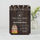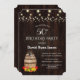 Fall Foliage Wine Barrel String Lights card design featuring a watercolour wine barrel, gorgeous fall foliage, string lights, wine bottle, wine glass and traditional farm foods on the barrel, all on an old barn. Use Customise tool to add your info. You can change fonts, colours. For matching items, please, visit my Fall Foliage Wine Barrel Collection.