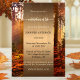Memorial, funeral or celebration of life service invitation featuring a colourful autumn forest with transparent text background overlay. On the back you can replace the forest image with your own custom photo if you like.