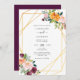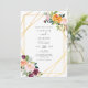This elegant fall wedding invitation features a gold geometric frame and pretty autumn flowers. The watercolor floral bouquets include yellow, blush pink, peach, and purple roses. Personalise the modern wedding invite with your wedding details. Matching wedding stationery in our "Autumn Elegance" collection.