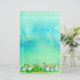 A lined stationery for the autumn season featuring white ghost pumpkins and pears drawn with ink and painted with watercolor on a blue, green, and yellow watercolor wash background.