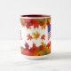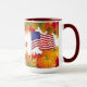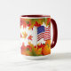 A very colorful fall design with leaves and pumpkins, and the Star-Spangled Banner flies proudly.