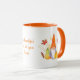 Keep warm by enjoying your favourite beverage as the weather starts getting colder with this adorable fall gnome mug. The design features a gnome with pumpkins and fall leave with orange as the main colour.