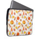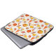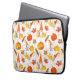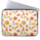 This is an adorable autumn themed laptop sleeve with a design featuring gnomes with pumpkins and leaves.