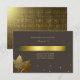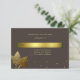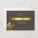 Stylish Fall wedding response card done in dark brown, on the front, with graphics of a gold text plaque, gold tone polka dots across the bottom and two golden leaves. The back of the invitation is done in a textured gold look, with golden tan text, on the front, ready to personalise. Matching products are available.