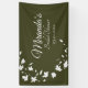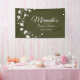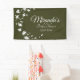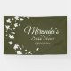 Pretty and modern bridal shower sign design features a spray of white flowers and white customisable text on Autumn green background