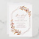 Modern fall greenery bridal shower invitation featured rustic watercolor autumn botanical foliage greenery design with real rose gold foil leaves and geometric frame, simple and elegant.