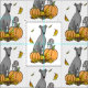 Fall Greyhound (grey) Dog Pumpkins Leaves Funny Fabric