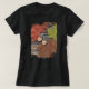 The staged photo of fall coloured leaves surrounds two small hearts. The leaves are made of a jute material and give added texture to the artwork. The original photo is masked to fade into the colour of the t-shirt.